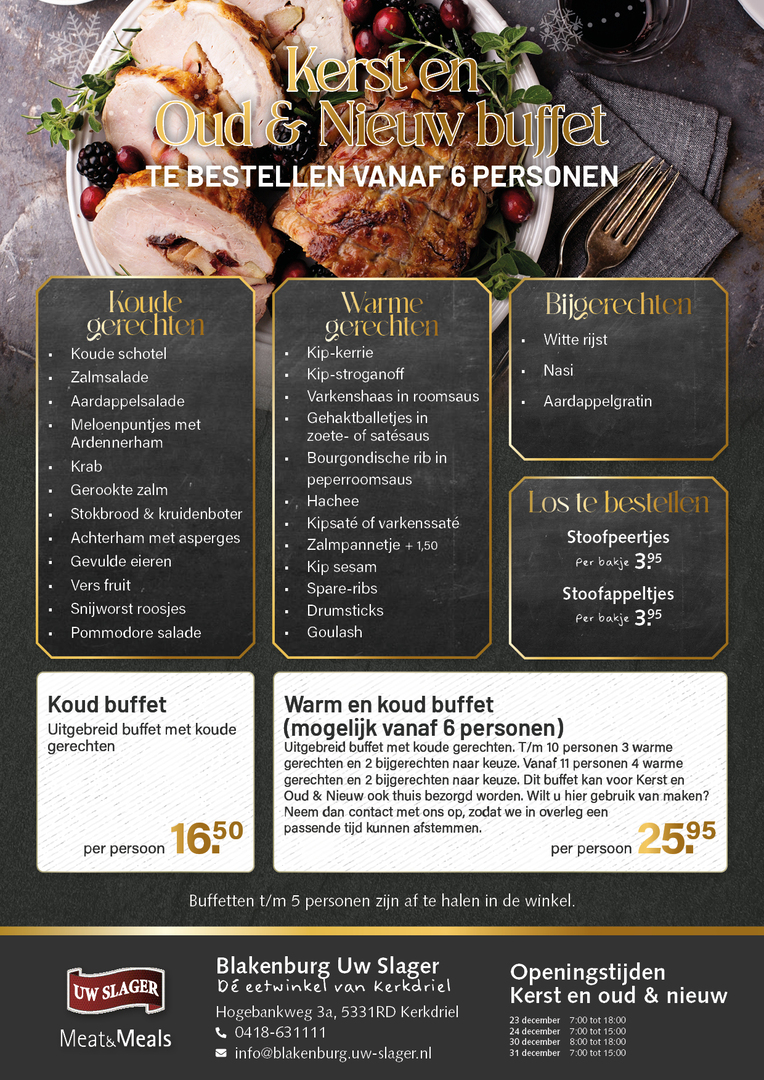 Tussen 13 december en 1 januari kun je jouw heerlijke kerst- en oud & nieuw-buffet bestellen!